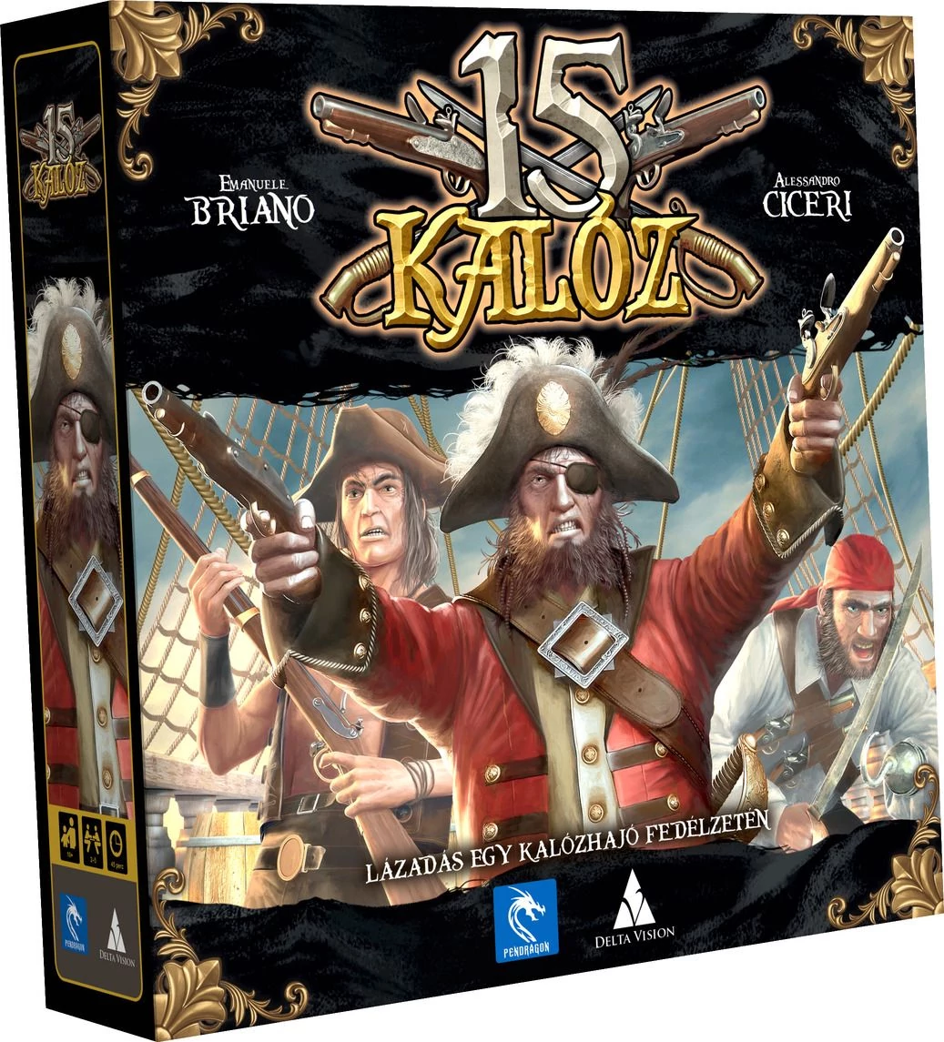 Ki ajánl többet a legénységnek, mielőtt kitör a lázadás a kalózhajón? A 15 kalóz gyönyörűen illusztrált, titkos szerepes társasjáték. Lázadás törhet ki a kalózhajón, és nem tudni, kik támogatják a kapitányt a nagy kincs reményében, és kik azok, akik inkább „leváltanák”... A játékosok a kártyáikkal a legénységet irányítva próbálnak rájönni, ki melyik csapatba tartozhat.
