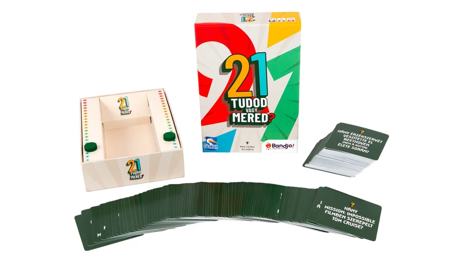 A 21 – Tudod vagy mered? egy könnyen tanulható, izgalmas társasjáték, amelynek az alapja a blackjack (vagy más néven 21) világát idéző pontvadászat, de itt a kártyákon kérdések vannak, a válaszok pedig tippeléssel születnek.