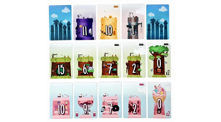 És hogy milyen szint illik a tornyaikhoz legjobban? Hát sorszámban minél közelebbi, mert így tud egy torony a lehető legmagasabbra épülni. És persze felfelé csökkenő sorszámú (vagyis átmérőjű). Hacsak nem kerül bele egy olyan trükkös kártya a toronyba, amely „megbolondítja” az emeletek sorát!