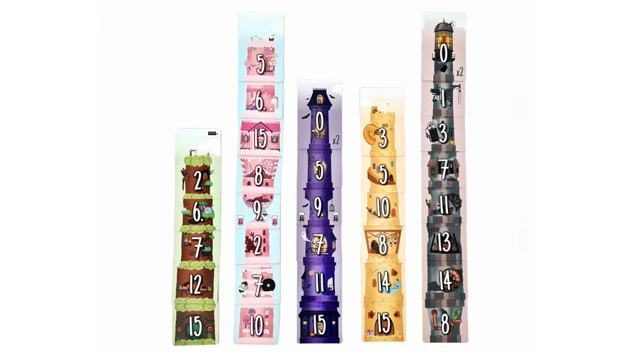 Az 5 torony könnyed, pörgős, szettgyűjtős családi kártyajáték. A játékosok licitálással próbálják megszerezni a tornyaikhoz legjobban illő szinteket.