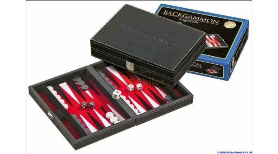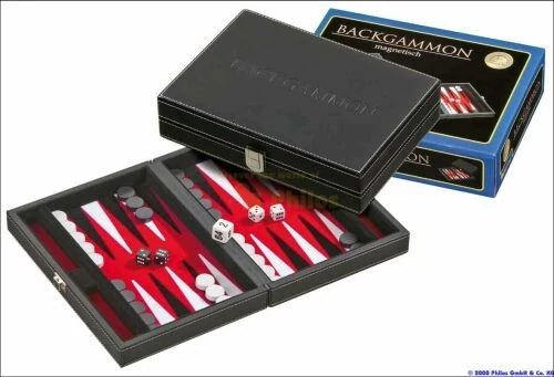 601711 Backgammon 23 cm, fekete műbőr