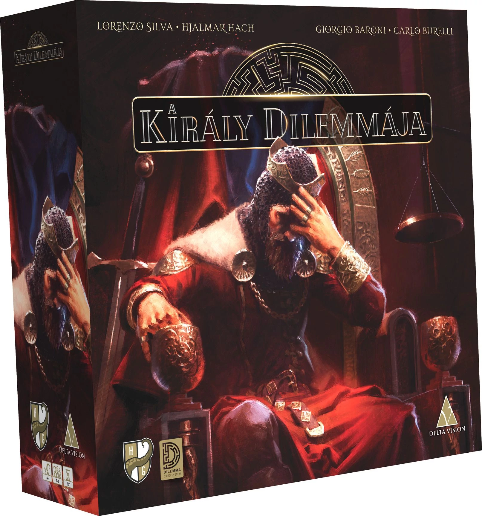 A király dilemmája egy interaktív narratív játékélményt kínáló társasjáték, melyben a számtalan elágazó történetvonal sokféle végkifejlethez vezethet. A játék mechanikájának alapját az eseménypakli folyton változó tartalma biztosítja.