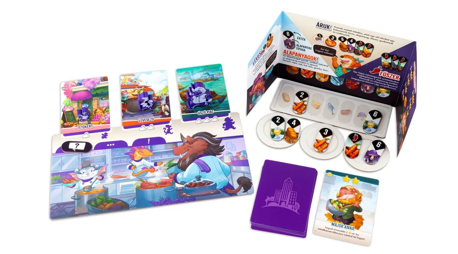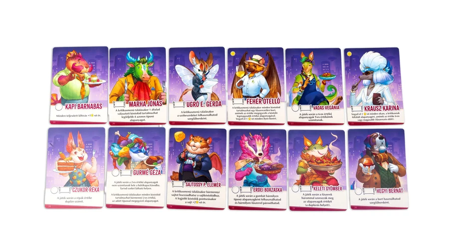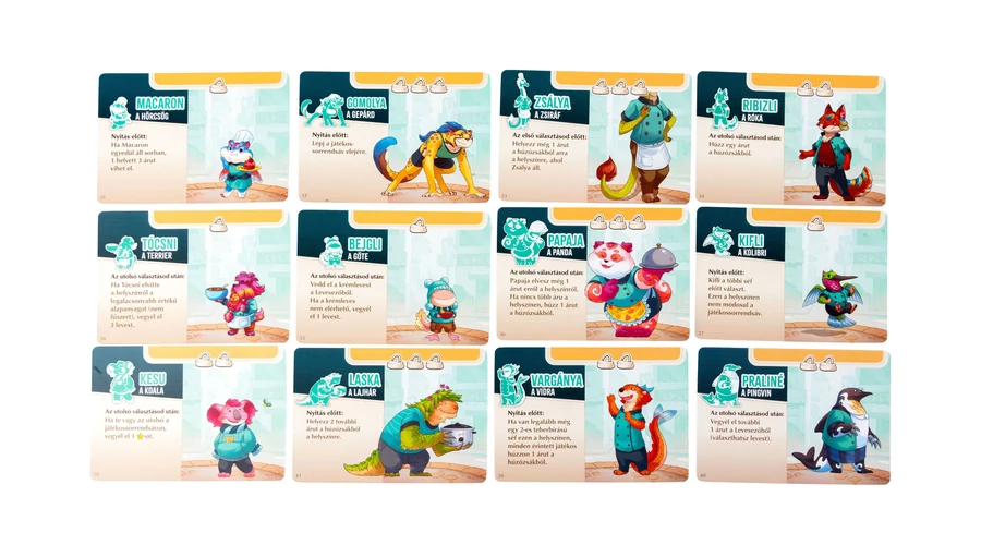 Az Állati fogások dinamikus, szórakoztató társasjáték, ahol a játékosok éttermeket irányítanak, és igyekeznek az aktuálisan keresett fogásokat minél értékesebb alapanyagokból elkészíteni. A játék során a séfek beszerző körútra indulnak, hogy minőségi hozzávalókat gyűjtsenek, miközben próbálják kitalálni, hogyan is tudnák a legjobban lenyűgözni a kritikusokat. A társasjáték kombinálja a helyszíneket, a különböző étterem kihívásokat, és a szereplők egyedi tulajdonságait, hogy minden egyes játékalkalom friss és izgalmas élményt kínáljon.