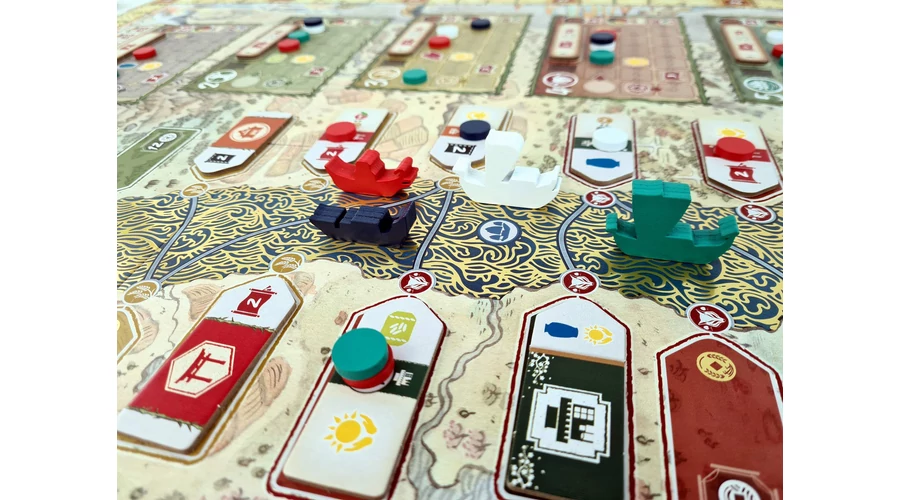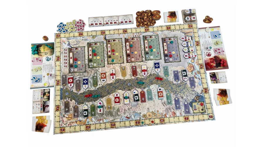 Minden körben egy épületet építesz, hajózol, vagy árut szállítasz a vásárlóidnak. Az isteni kegy segítségével módosíthatod a kockadobásokat, így a szerencsét is a saját kezedbe veheted, miközben kereskedelmi birodalmadat építed. Az épületek és az áruáramlás folyamatosan gazdagítanak, de a végső cél a legtöbb győzelmi pont megszerzése. Ne feledd: a császár is bejárja a folyót, és jutalmazza azokat, akik leginkább hozzájárultak a birodalom jólétéhez!