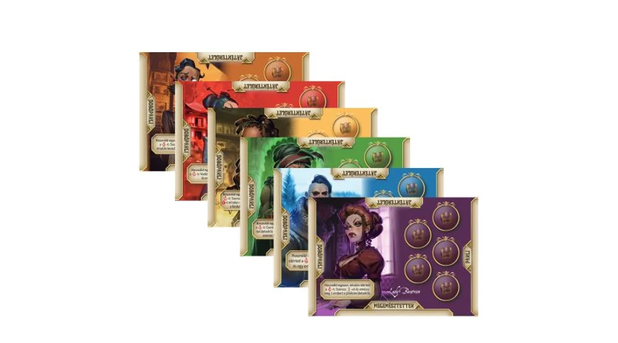 Szerezzétek meg a 6 vámpírlapból álló készletet, melyek mindegyike egy játszható vámpírnak ad egy játékonként egyszer használható képességet!