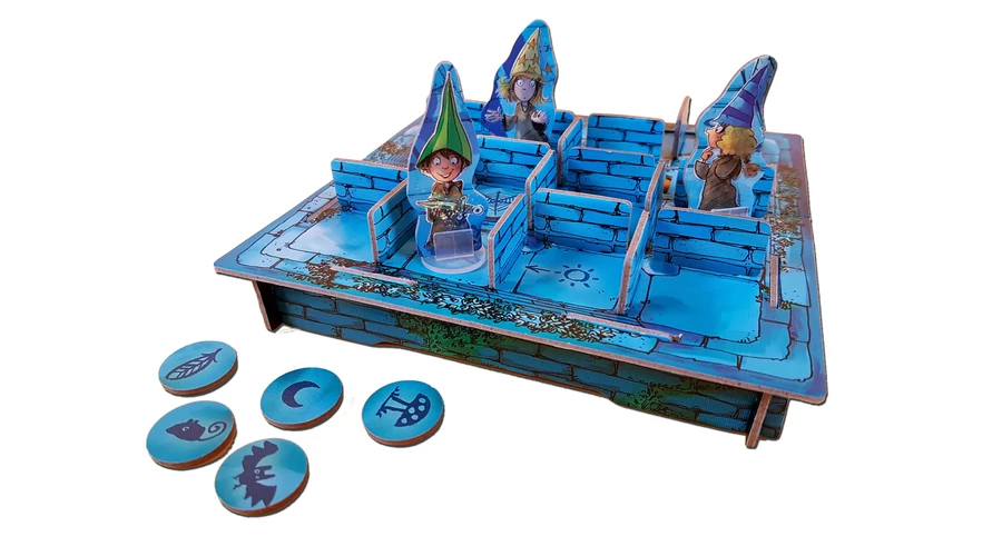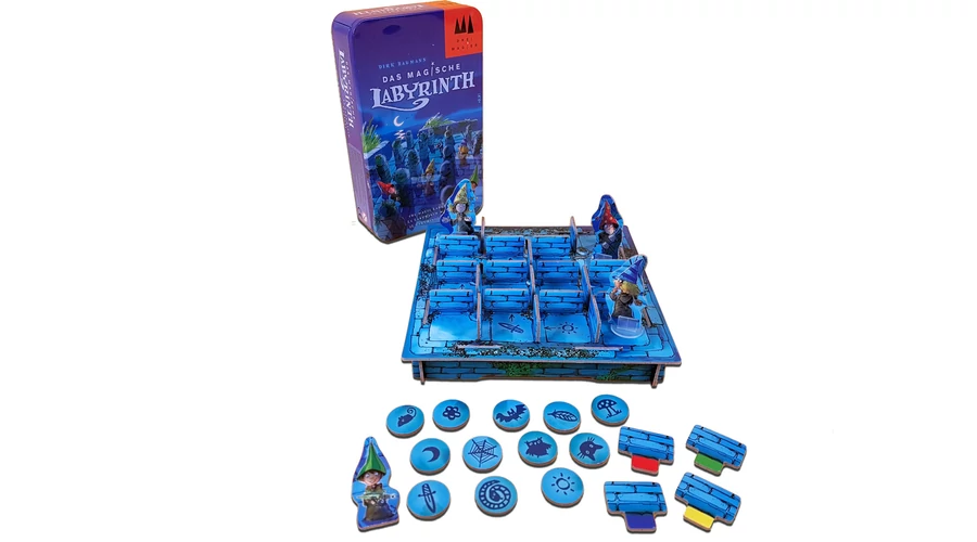 Szerezzétek meg a bűbájos tárgyakat egy láthatatlan labirintusban! Az elvarázsolt labirintus – fémdobozos társasjáték zsebre vágható családi játék. A játékosok varázslótanoncokként egy labirintusban próbálnak eljutni a kincsekhez úgy, hogy a falak rejtettek – emlékezniük kell, melyik milyen színű, hogy továbbhaladhassanak. A memóriát fejlesztő társasjáték.