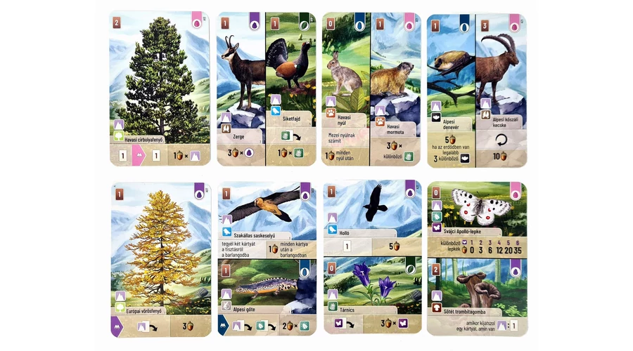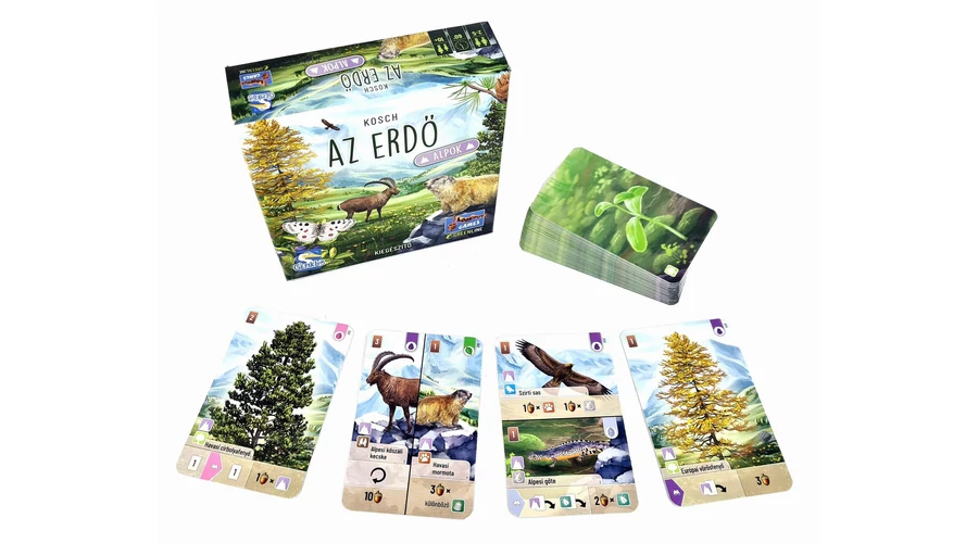 Az erdő: Alpok kiegészítővel új kártyákkal bővíthetitek az alapjátékot. Az új állatok mellett két új fafajta is megjelenik. A játékhoz szükség van Az erdő társasjátékra!