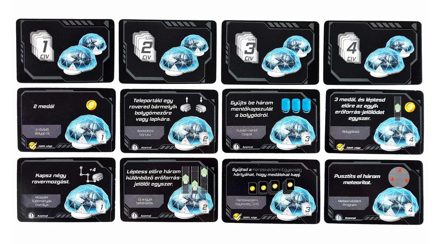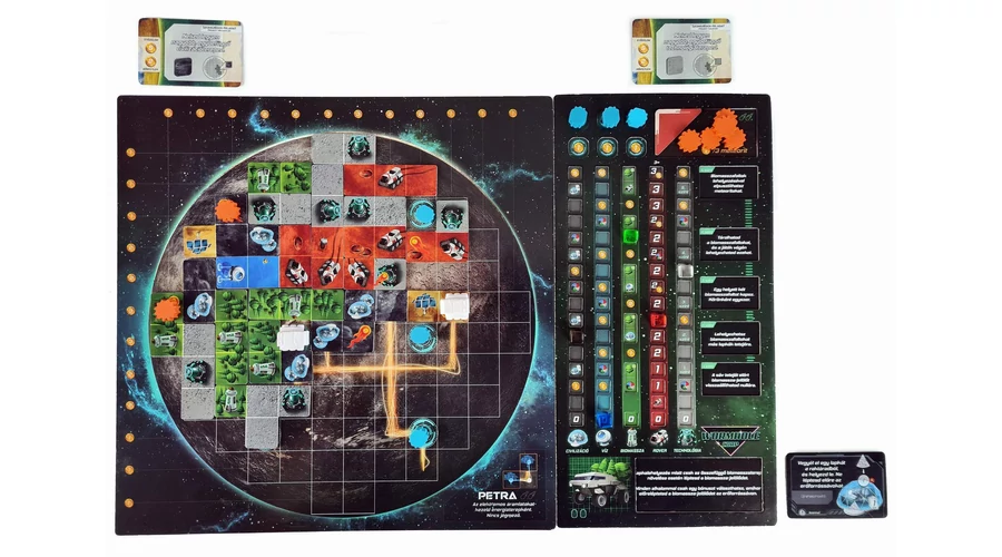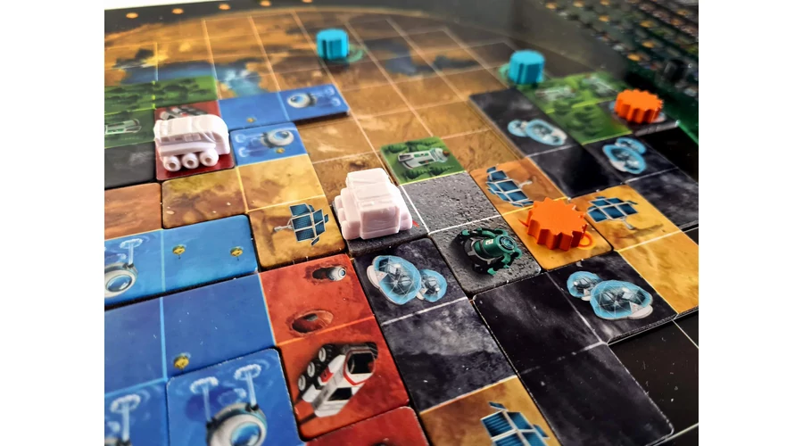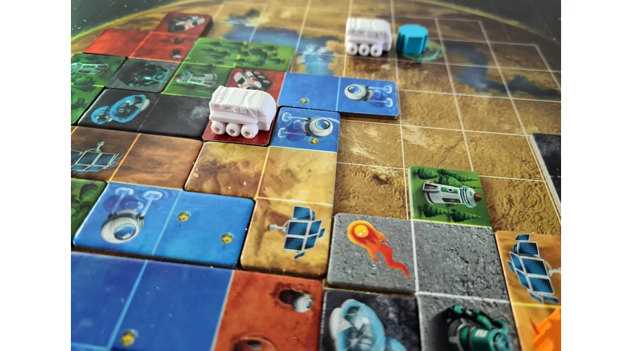 Mármint a lapokat lerakni egyszerű, csak pár szabálynak kell megfelelni: ne lógjon le a bolygóról; érintkezzen egy már lent levő területtel; és véletlenül se nyomja agyon az egyik, a bolygón szorgosan aszteroidákat és mentőkapszulákat gyűjtögető roverünket sem. Jó, az utóbbi lehetséges, de nem ajánlott. Viszont a lerakni kívánt lapkát ki is kell választanunk. Ehhez az asztal közepén álló S.U.S.A.N.-t, azaz az Űrállomást kell a tetszésünk szerinti pozícióba forgatni – de ugyanekkor a többi játékos is választhat a felé néző raktárakból egy lapot. Érdemes egyik szemünket a saját, egyre jobban kiépülő bolygónkon tartani, egyet a különböző erőforrások bevételi sávján, és egyet a többi játékos (de legalább a szomszédjaink) bolygóin. Egy biztos, Az ismeretlen bolygó partijaiban minden játékosnak meg kell tanulnia egyszerre több dologra figyelni...
