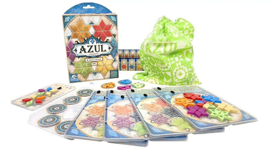Az Azul Mini – A királyi pavilon a gyönyörű családi társasjáték úti kiadása. A játékosok szép cserepeket választanak, és ezekből építik fel a saját pavilonjaikat, hogy az övék legyen a legértékesebb.