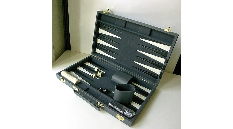 Backgammon - szürke műbőr koffer (38cm) - 604165