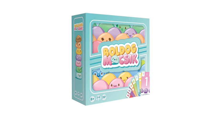 A Boldog mocsik könnyed kártyajáték, amelyben a játékosok csak akkor tehetnek le két kártyát a kezükből, ha az abból alkotott számpár nagyobb az asztal közepén lévőnél. Vagy kisebb – attól függ, az értékkártya épp + vagy - jeles oldalát mutatja. Ám ha összejön két azonos értékű lap, mondjuk két darab 2-es, akkor azt bármikor letehetik! Ezek a párosok a „boldog mocsik”.