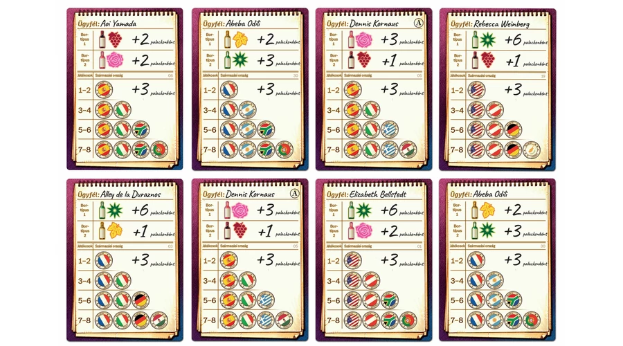 Ebben a társasjátékban ügyfeleid igényeire figyelve válogatod össze és érleled boraidat – szem előtt tartva, hogy a borok értéke attól is függ, hol helyezkednek el a pincédben!