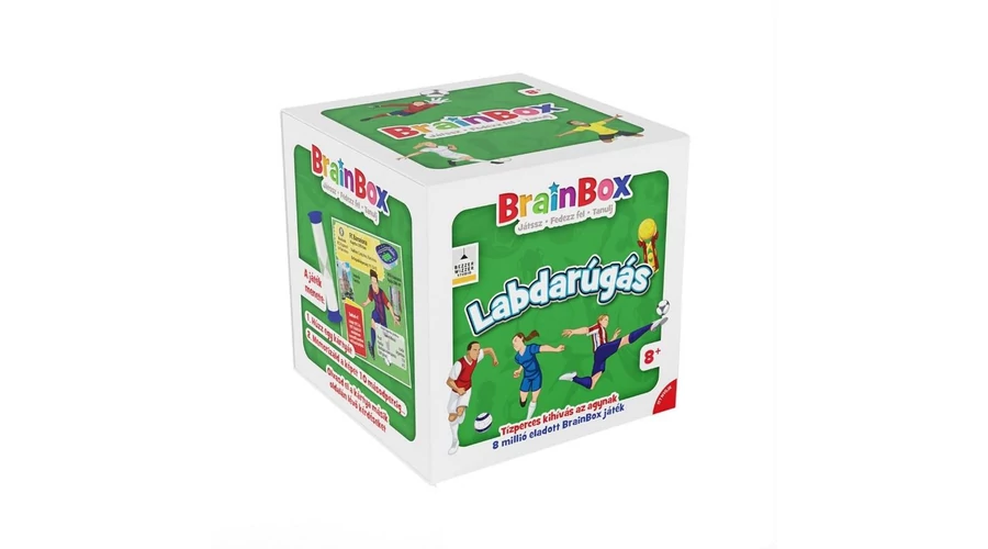 A BrainBox Labdarúgás (Foci) nem a lábmozgásodat, de a memóriádat edzi. Gyorsan tanulsz? Lássuk, hogyan dekázol a focis tudással. A Brainbox Foci remek agytorna és szórakozás, egy vagy akár több játékos részére! Húzz egy kártyát, tanulmányozd, és jegyezz meg minél több információt 10 másodperc alatt. Ezután fordítsd e a kártyát, dobj a kockával, és válaszolj helyesen a kidobott számmal jelölt kérdésre. Ne húzd ám az időt, hiszen a homokórán gyorsan leperegnek a szemek! A válaszokat a kártyán ellenőrizheted. Ha jó megfigyelő vagy, és ismered a a legikonikusabb focicsapatokat és játékosokat, akkor a legtöbb kártya nálad landol! A BrainBox a gyors megfigyelések és a vizuálismemória-kérdések családi játéka.