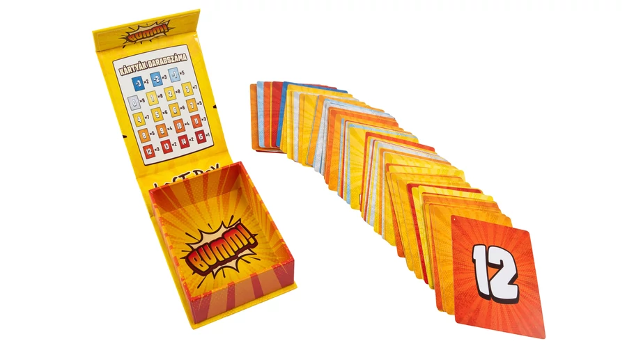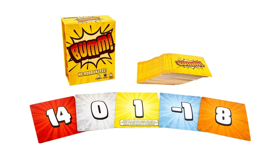 A Bumm! - Ne robbanj fel egy feszült, pörgős kártyajáték, ahol minden kijátszott lap közelebb visz a győzelemhez – vagy a robbanáshoz. Figyelsz, számolsz, kockáztatsz, és közben eldöntöd: most még bevállalod… vagy inkább visszavonulsz?