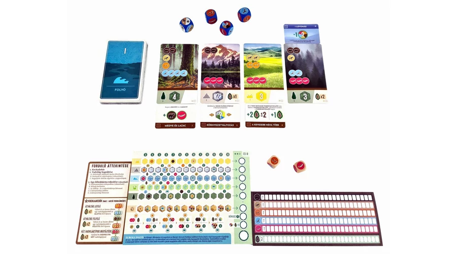 A Cascadia – Gördülő folyók az Év játéka díjas Cascadia vadvilága „válassz és írj” változata. A játékosok változatos élővilágot igyekeznek létrehozni a saját lapjukon a megfelelő kockák felhasználásával.