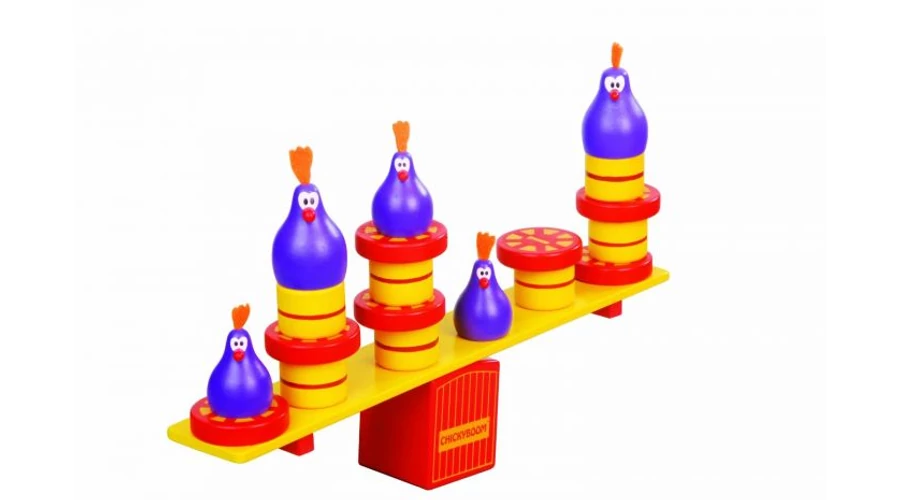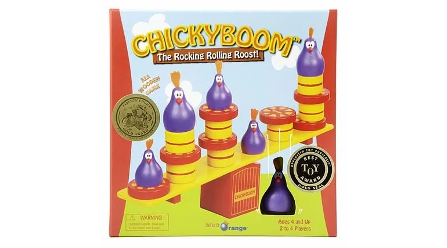 „Tyúkok ülnek rajta...” A Chicky Boom egyensúlyozós családi társasjáték. A játékosok úgy pakolgatják fel a tyúkokat és a szalmabálákat a kakasülőre, hogy az ne billenjen fel. Az ügyességet és a térlátást fejlesztő társasjáték.