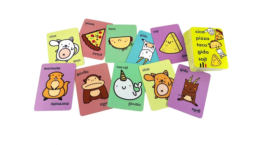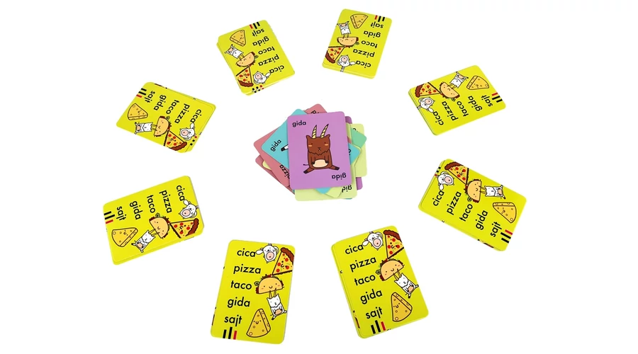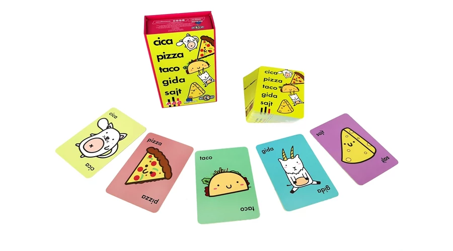 A Cica, pizza, taco, gida, sajt egyszerű szabályú, pörgős, zsebre vágható partijáték nagyobb társaságoknak is. A játékosok sorban csapják fel a kártyáikat, miközben ki kell mondaniuk a soron következő szót. Ha egyezik a kártya a szóval, vagy különleges kártya jelenik meg, azonnal reagálniuk kell a játékosoknak, és a leglassabbnak kell elvinnie az összes kártyát. A koncentrációt és a reflexeket fejlesztő társasjáték.