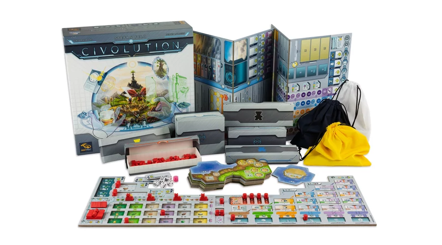 Lépjetek a teremtő istenek szerepébe, és vezessétek diadalra népeteket! A Civolution stratégiai társasjátékban moduláris világ, egyedi kockamechanizmus és megszámlálhatatlan fejlesztési lehetőség vár rátok.