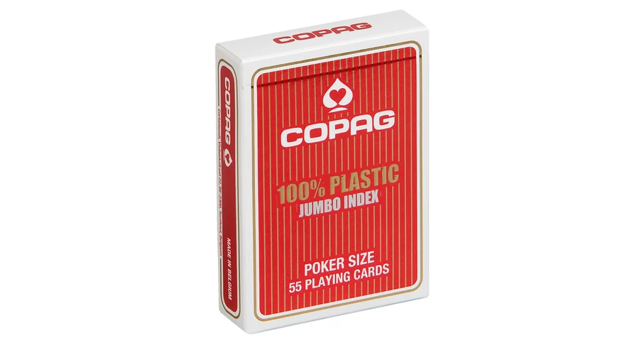 Copag 100% plasztik kártya, 55 lap, nagy index, piros hátoldalú
