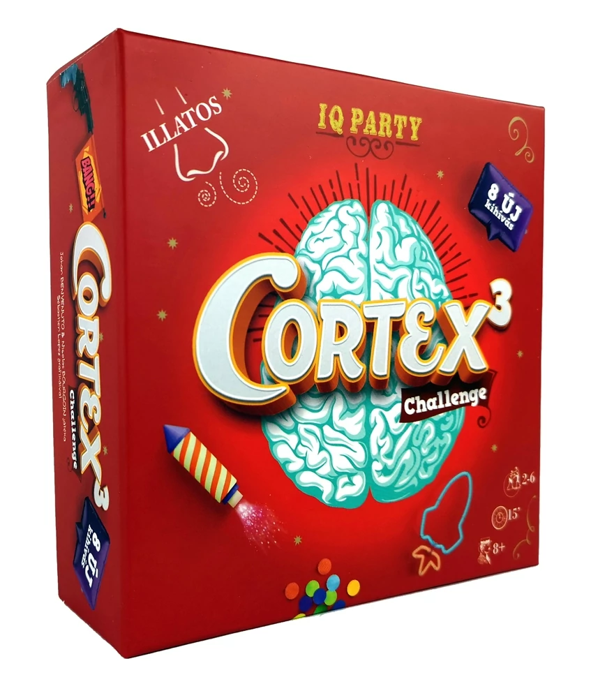 Gyorsuld le a többieket nyolcféle agymegmozgató feladványban! – Illatos kártyákkal! A Cortex 3 pörgős megfigyelési-logikai családi partijáték. A játékosok kártyáról kártyára nyolc, az agyuk különböző területeit igénybe vevő feladványtípusban mérhetik össze gyorsaságukat. Megfigyelés, következtetés, útvonalkeresés... és különleges, illatos kártyák! Kombinálható a többi Cortex társasjátékkal.