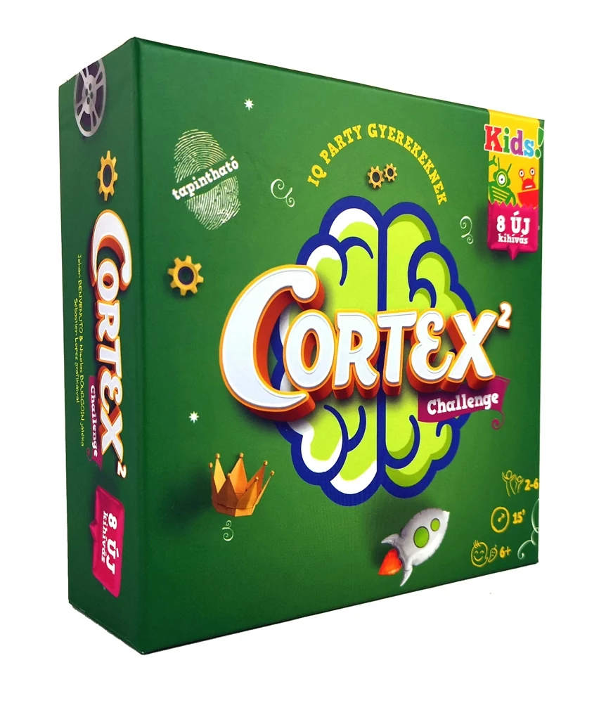 Gyorsuld le a többieket nyolcféle agymegmozgató feladványban – már kisebbeknek is! A Cortex Kids 2 pörgős megfigyelési-logikai családi partijáték. A játékosok kártyáról kártyára nyolc, az agyuk különböző területeit igénybe vevő feladványtípusban mérhetik össze gyorsaságukat. Labirintus, szín- és formafelismerés... és különleges, kitapintható kártyák! Kombinálható a többi Cortex társasjátékkal.
