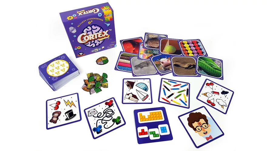 Gyorsuld le a többieket nyolcféle agymegmozgató feladványban – már kisebbeknek is! A Cortex Kids pörgős megfigyelési-logikai családi partijáték. A játékosok kártyáról kártyára nyolc, az agyuk különböző területeit igénybe vevő feladványtípusban mérhetik össze gyorsaságukat. Kakukktojás, memória, párkeresés... és különleges, kitapintható kártyák! Kombinálható a többi Cortex Kids társasjátékkal.