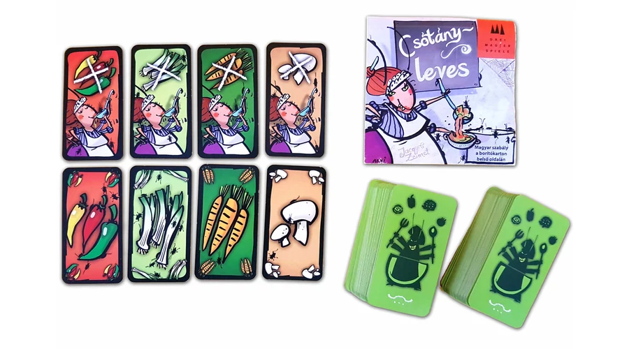 Szabadulj meg a zöldségektől, hogy a te levesed legyen a legfinomabb! A Csótányleves vicces és népszerű családi kártyajáték. A játékosok igyekeznek megszabadulni a lapjaiktól úgy, hogy az épp felcsapott kártyájukat megnevezik – hacsak nem tiltja épp azt valami! Mert olyankor kénytelenek villámgyorsan egy másik összetevőt megnevezni – csak nehogy az is tiltva legyen... A koncentrációt fejlesztő társasjáték.