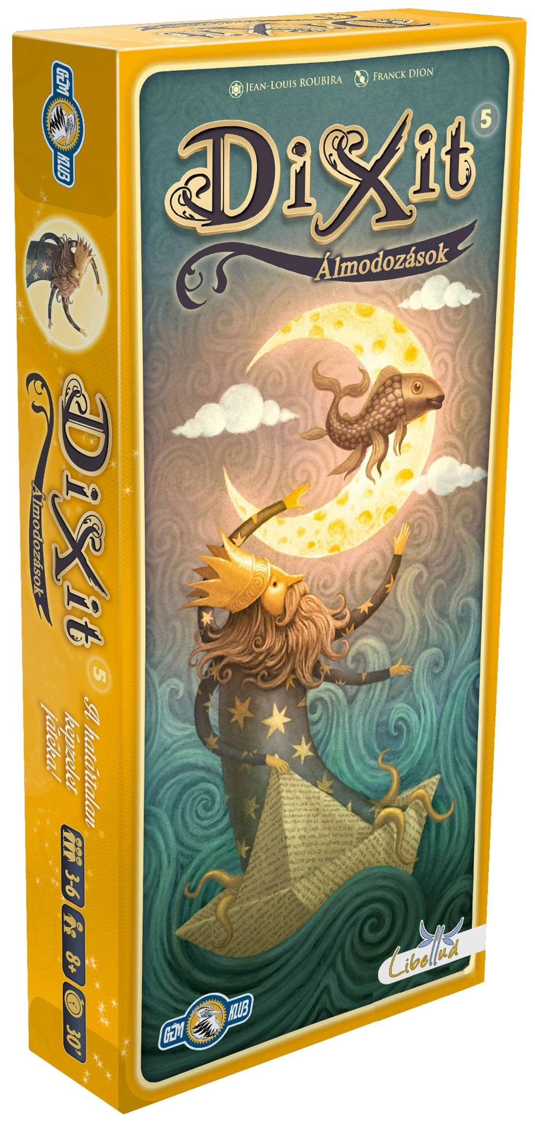 A Dixit kiegészítője: 84 gyönyörű, új kártyával merülhetünk az álmaink mélyére. A Dixit 5 – Álmodozások segítségével a népszerű, Év játéka díjas asszociációs társasjátékot új festményekkel bővíthetjük. A játékhoz szükség van a Dixit vagy a Dixit Odyssey alapdobozra!