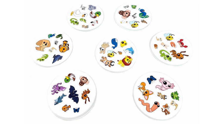 A Dobble Animals pörgős, zsebre vágható kártyajáték 5-féle játékváltozattal. A kártyákon 8-8 különböző állat látható, és bármelyik két kártyán mindig van egy ugyanolyan belőlük. A játékosok feladata, hogy a többieknél gyorsabban megtalálják a közös képeket. A koncentrációt és a reflexeket fejlesztő társasjáték.