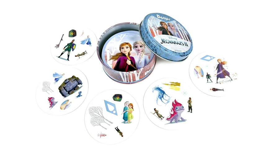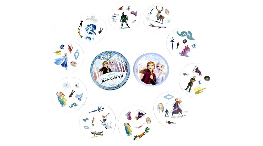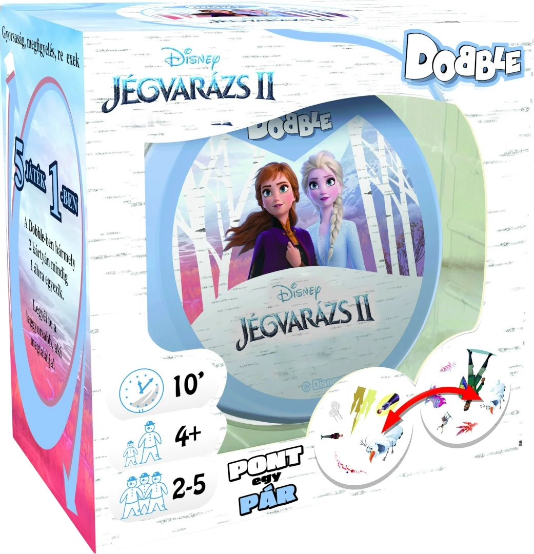 A Dobble Jégvarázs pörgős, zsebre vágható kártyajáték 5-féle játékváltozattal. A kártyákon 6-6 különböző képecske látható a Jégvarázs II. világából, és bármelyik két kártyán mindig van egy ugyanolyan belőlük. A játékosok feladata, hogy a többieknél gyorsabban megtalálják a közös képeket. A koncentrációt és a reflexeket fejlesztő társasjáték.