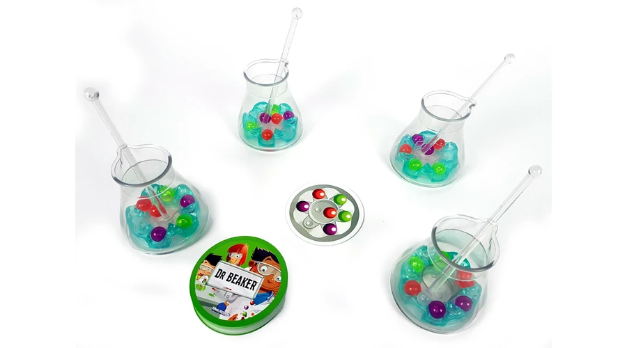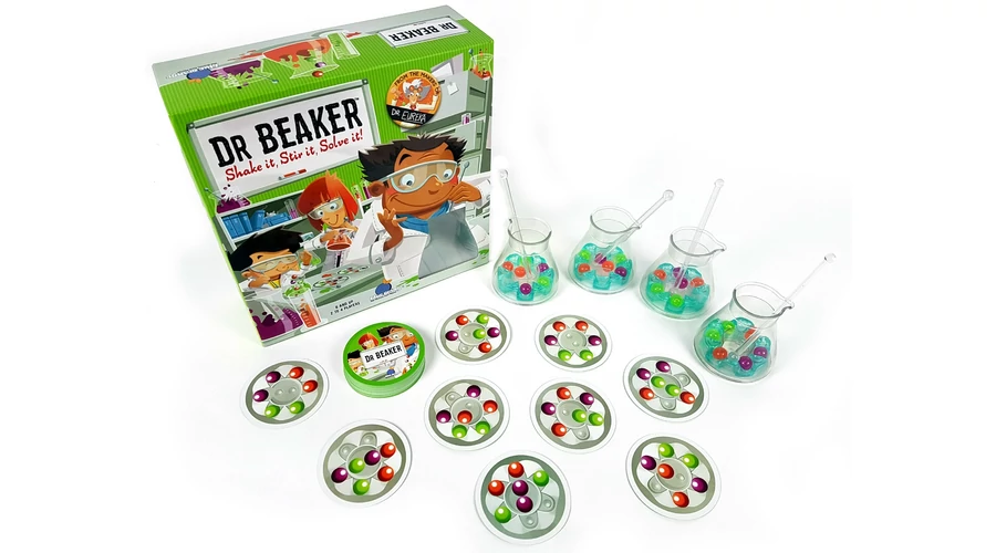 Ki lesz a legügyesebb kémikus? A Dr. Beaker könnyen tanulható, családi logikai társasjáték. A játékosok feladata, hogy a felcsapott kártyának megfelelően minél gyorsabban elrendezzék a „vegyszereket” a mérőpoharukban a keverőpálcikájuk segítségével – ehhez viszont végig kell gondolniuk, mit milyen sorrendben mozgatnak. A logikus gondolkodást fejlesztő társasjáték.