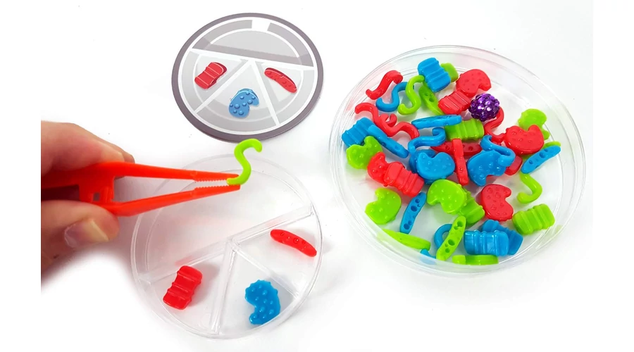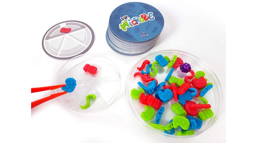 Ki lesz a legügyesebb kutató? A Dr. Microbe könnyen tanulható, családi logikai társasjáték. A játékosok feladata, hogy minél gyorsabban kikapdossák csipeszükkel a „vírusokat” középről, és azokat a felcsapott kártyának megfelelően elhelyezzék a saját petricsészéjükben. A logikus gondolkodást fejlesztő társasjáték.