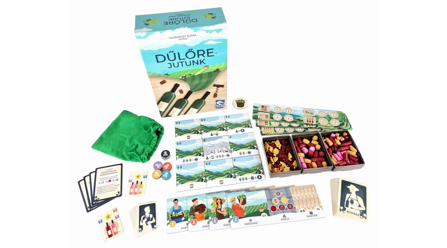 Hajnóczy Soma, a Fröccs címűfrissítőpartijáték szerzője–akinem melleslegkétszeres bűvészvilágbajnok is–ezúttal egy igazi családi ínyencséget varázsolt előa kalapból:aDűlőre jutunk könnyed, taktikus játék, melyben tapasztalt borászok bőrébe bújva járjuk majd a dűlőket, hogy az onnan szüretelt szőlőből bort, a borból pedig minél győzelmi pontot nyerjünk.