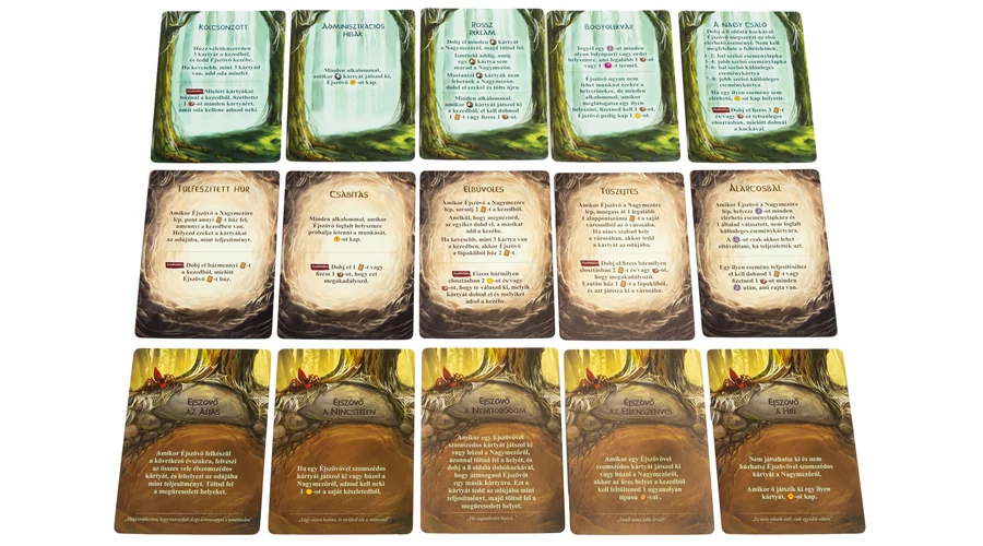 Az Everdell: Ködrengeteg kiegészítő több modullal bővíti az alapjátékot. Cseréljétek le a gazdaságokat évszakonként változó verziókra, hívjátok segítségül a városalapító Örökfark Kurszánt, költöztessetek be a városba legendás szereplőket.