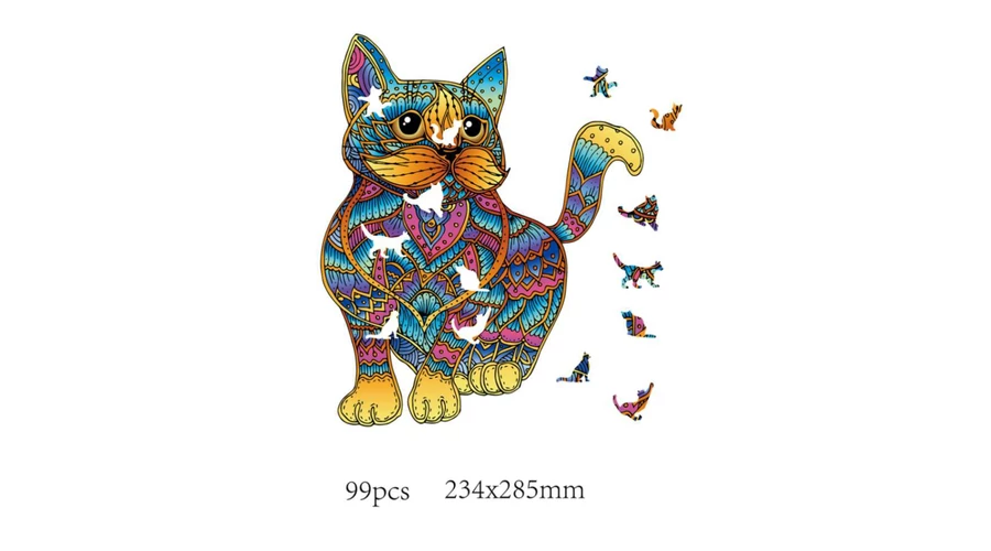 Fából készült színes, 99 darabos puzzle.