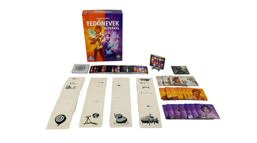 A Fedőnevek képekkel nagyszerű szó- és képasszociációs partijáték. A két csapat vezetőinek olyan szavakat kell kitalálniuk, amelyek segítségével a társaik rájönnek, hogy a kirakott 20 képből melyek a sajátjaik. A szókincset és a kreativitást fejlesztő társasjáték.