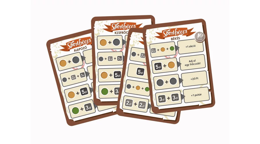 Kiegészítő! Nem játszható a Fröccs alapjáték nélkül! Keverhető a Kisfröccs kiegészítővel.