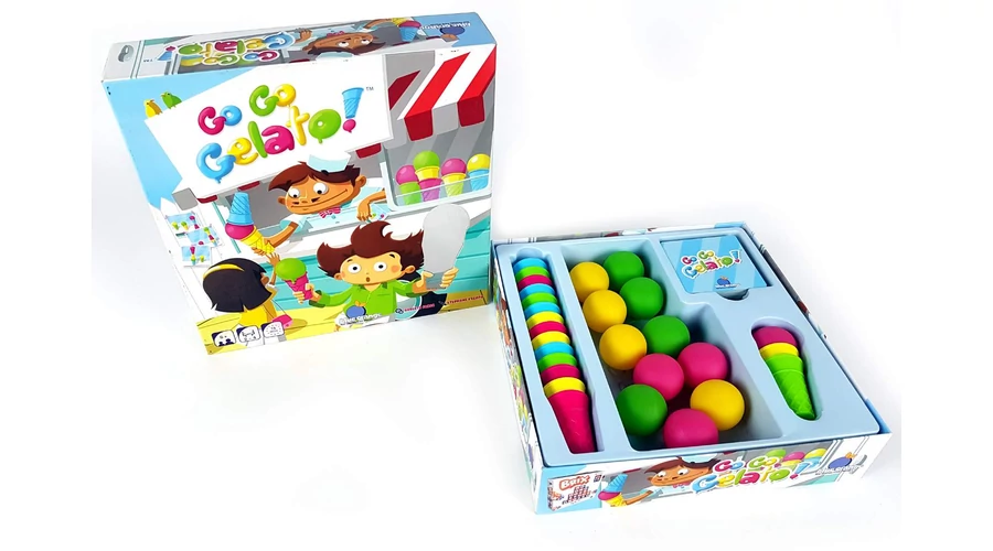 Legyél te a legügyesebb fagyis! A Go Go Gelato! ügyességi-gyorsasági logikai családi társasjáték. A játékosoknak a felcsapott kártya alapján kell minél gyorsabban elrendezniük a tölcséreket és a gombócokat. A kézügyességet és a logikai képességeket fejlesztő társasjáték.