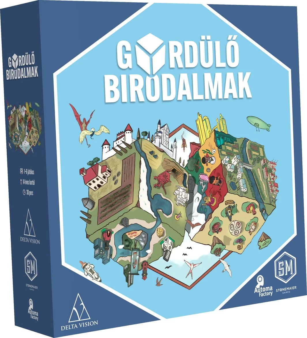 Egy Gördülő birodalmak doboz 1–6 játékos számára tartalmaz