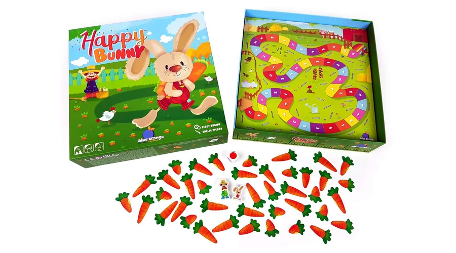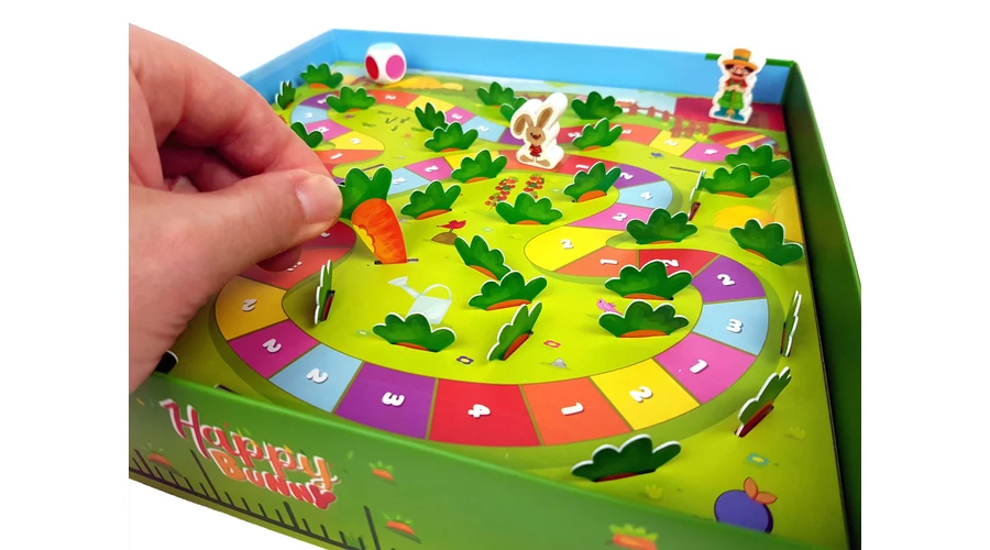 Gyűjtsetek együtt minél több répát! A Happy Bunny kedves, kooperatív családi társasjáték. A játékosok a színdobókocka segítségével lépkednek a táblán, hogy begyűjtsék a különböző hosszúságú répákat.