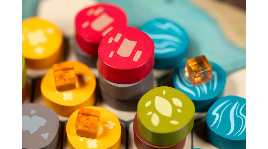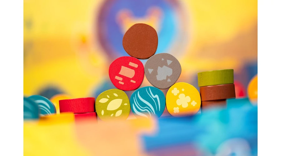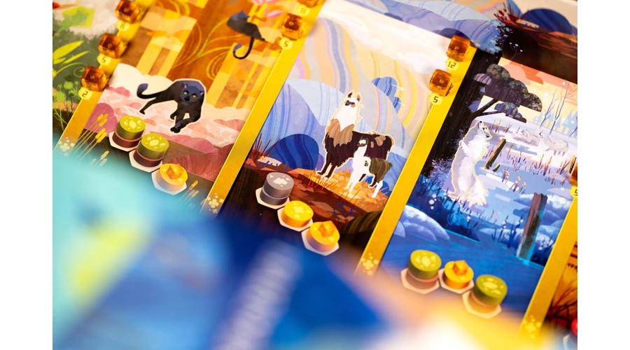 Persze az építkezés nem mindig megy úgy, ahogy ők szeretnék: függ a kínálattól, ami épp a központi táblán elérhető, meg attól is, a többiek mire vetettek szemet. A központi táblán ugyanis hármasával tűnnek fel a színes tájjelzők, és csak egy triót vehetnek el. Akár az orruk elől. Így nem mindig olyan tájelemekhez jutnak, amit elsőként kigondoltak. Ugyanakkor szerencsére nincs kötöttség, a szerzett tájelemeket bárhová letehetik saját területükön. Az is lehet, hogy a tábla 4-5 pontján alakítanak ki egy-egy terület, ami lehet, hogy csak később készül el.