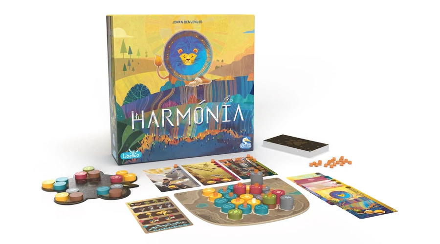 A Harmónia színes logikai családi társasjáték. A játékosok tájkorongokból építenek ki különböző élőhelyeket az állatok számára.