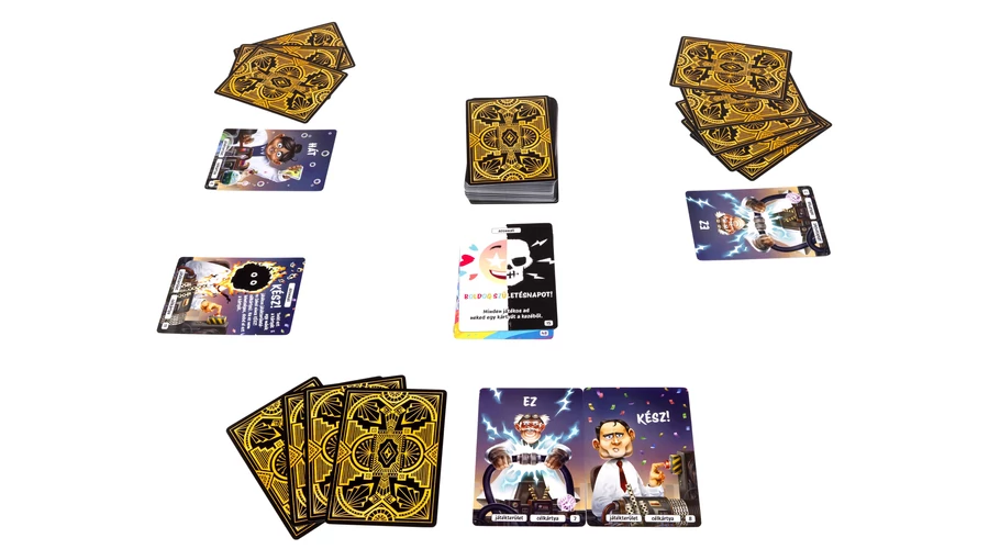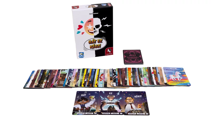 A Hát ez kész! könnyed, kompetitív kártyajáték, amelyben az a cél, hogy elsőként kirakd lapjaidból a „HÁT EZ KÉSZ!” kombinációt. De persze semmi sem ilyen egyszerű! A játék során különleges szabályok és váratlan események – mint például a „királycsináló” vagy egy óra, ami pont 21:34-et mutat – folyamatosan megnehezítik a dolgodat.
