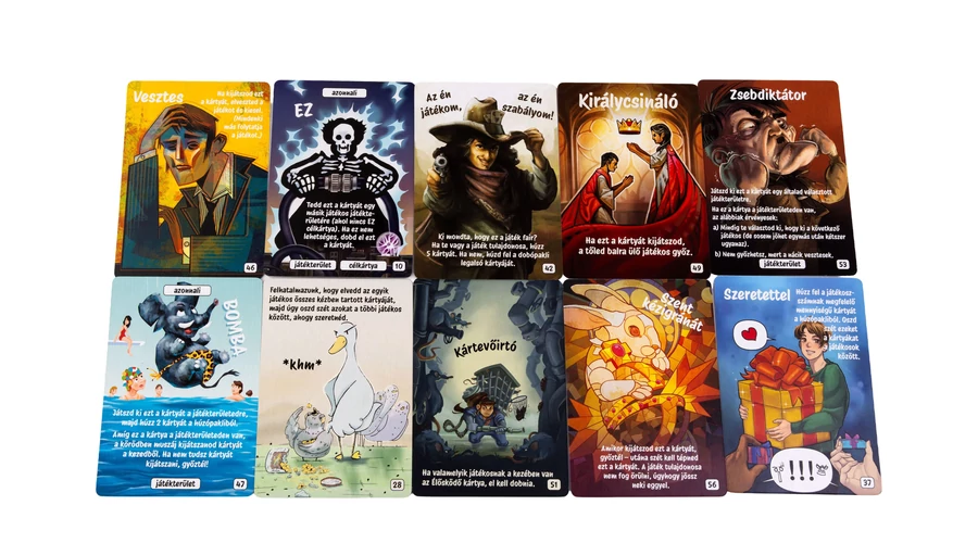 Szent Kézigránát, zsebdiktátor, rózszaszín elefánt és brokkolizmus – húzz kártyákat egy ellenfeledtől, dobass el kártyákat, vagy válj élősködővé, és nyerj abban a pillanatban, amikor valaki más nyerne… Egy játék, tele abszurditással, váratlan fordulatokkal és nevetéssel, amelyben a szabályok annyira kiszámíthatatlanok, mint maga az élet. Tedd próbára a humorérzéked, és merülj el a káoszban!