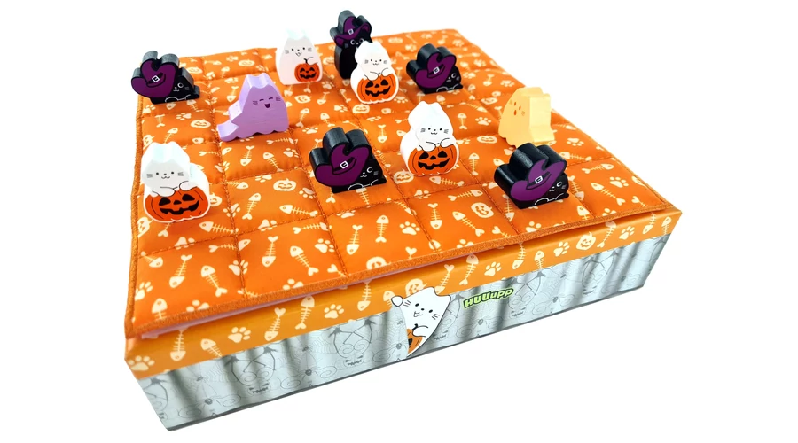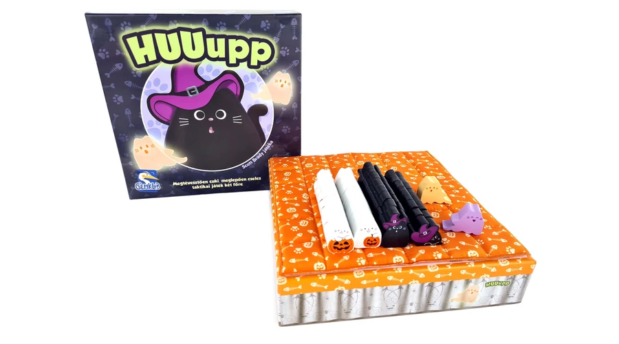 A HUUupp furfangos kétszemélyes családi társasjáték. A játékosok igyekeznek úgy ellökdösni az ellenfél cicáit, hogy létrehozzanak egy hármas sort a sajátjaikkal – segítségül egy szellemmacskát is bevethetnek.
