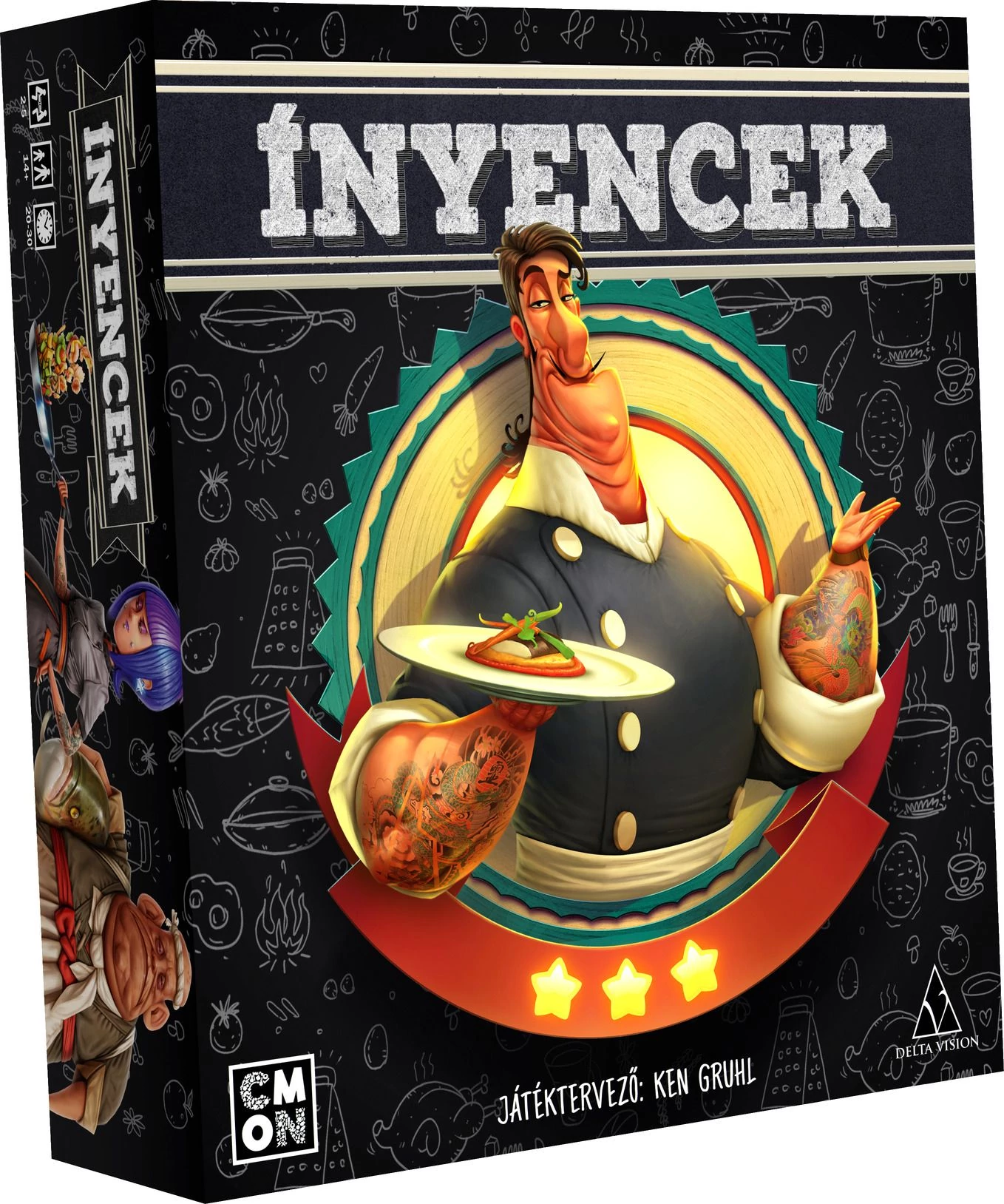 Az Ínyencek társasjátékban különféle ínycsiklandó akciók részese lehetsz. Vásárolj ételstandokat és helyezd el őket körültekintően az ételudvarodban! Megfelelő tervezéssel (és némi szerencsével) a nemzetközi kulinaritás csillagai még magasabbra emelik majd a népszerűségedet. Minden nemzet konyhája egyedi tulajdonsággal rendelkezik, így el kell döntened, kit és hova helyezel el. No és persze nem feledkezhetsz meg a különféle séfekről sem!Gyűjtsd össze a standjaidat, építsd fel az ételudvarodat és harapd ki a piacból a magad részét az ... Ínyencek játékban!