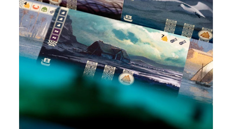 Persze ezekhez is kell legénység – ezért a toborzás a két választható alapakció egyike! A felfogadott vikingeket szín szerint szedjük csoportokba magunk elé – és ahogy egy színben sorban egymásra kerülnek a kártyák, nem csak az új jövevény, a korábban lerakott kártyák bónuszait is megkapjuk! (Nem csak hírnevet, győzelmi pontokat, de toborzásjelzőket és karpereceket is.) Épülnek is szépen a motorok (azaz az akciók által kiváltott „láncreakciók”) – csakhogy ugyanezek a vikingkártyák szükségesek a szigetkártyák megszerzéséhez is!
