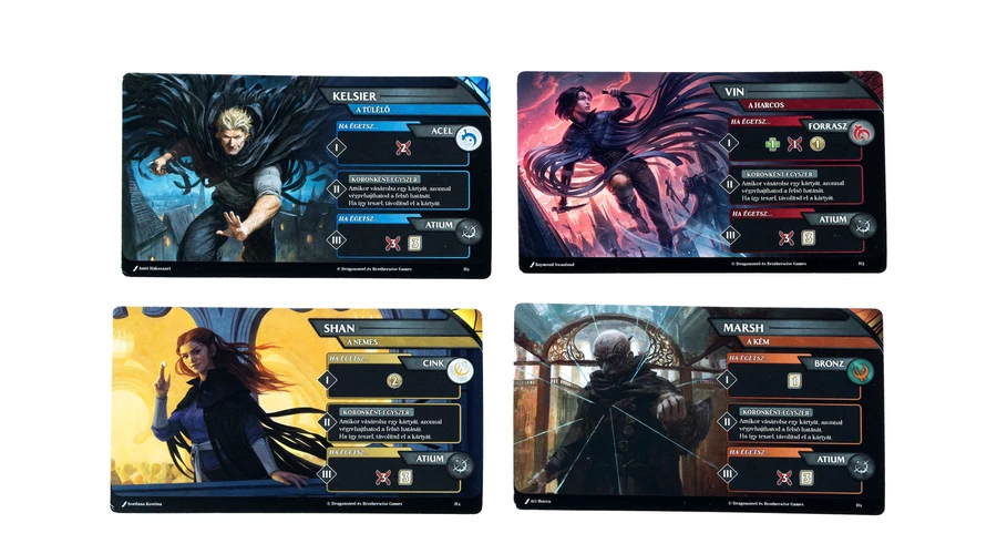 Égess acélt, hogy érmezáport zúdíts ellenfeleidre, vagy használd a vasat, hogy magadhoz rántsd fegyvereiket és előnyhöz juss a csatában. A forrasz emberfeletti erőt ad, amellyel legyőzheted a legerősebb ellenfeleidet is, míg az ón kifinomult érzékei segítenek a legveszélyesebb helyzetekben. A bronz és a vörösréz lehetőséget ad, hogy elrejtsd a nyomaidat vagy megzavard ellenfeleid terveit, miközben új kártyák és képességek után kutatsz a piacon. Minden fém új stratégiát, új lehetőséget ad a kezedbe: van, amelyik a támadásra, más a védekezésre vagy éppen a hosszú távú stratégiára épít – csak rajtad múlik, melyik úton indulsz el.