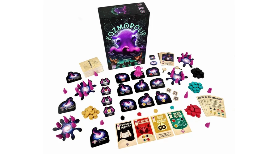 A Kozmopolip különleges kivitelű, könnyen tanulható családi társasjáték. A játékosok misztikus nyersanyagokat szereznek, hogy kártyákat aktiválhassanak, amelyek segítségével újabb nyersanyagokhoz juthatnak, és így tovább... míg egyikük meg nem idézi Kozmopolipot!