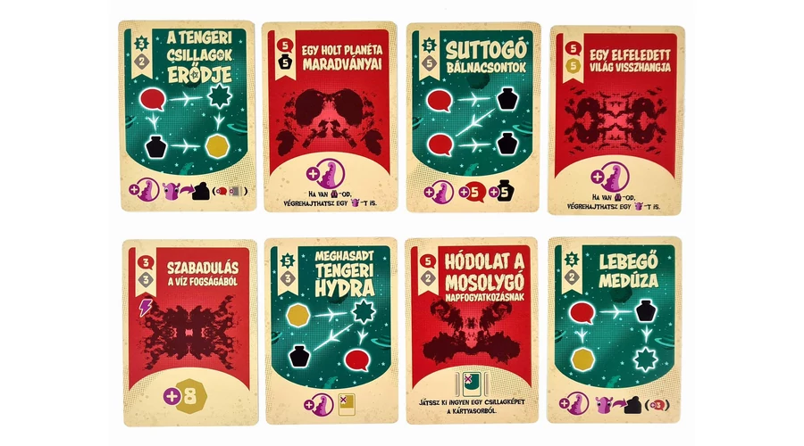 Ezekből megannyi különböző módon építhetik fel maguk előtt a játékosok azt a tablót, ami a győzelmet biztosítja majd számukra.És mindeközben elmerülhetnek a játék szemet gyönyörködtető, humoros és részletgazdag világában, ami a kártyákon látható illusztrációkból és apróvizuális poénokból épül fel szinte abban a percben, hogy a kártyákat először a kezükbe veszik.